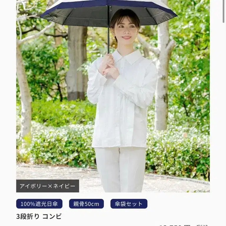아이보리 x 네이비 3단 접이식 양산 로사 블랑