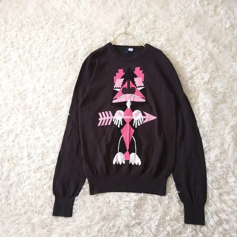 H&M 에이치앤엠 크루넥 추상 패턴 자수 니트 스웨터 S 블랙