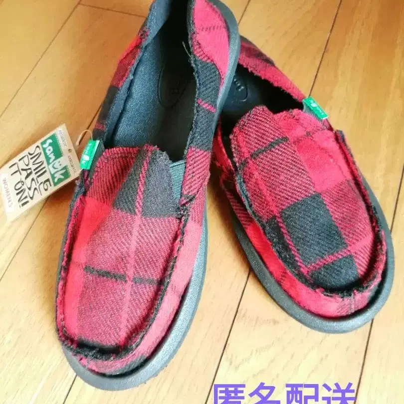 택 포함 새상품 사누크 여성용 신발 21.5cm 체크 무늬 익명 배송