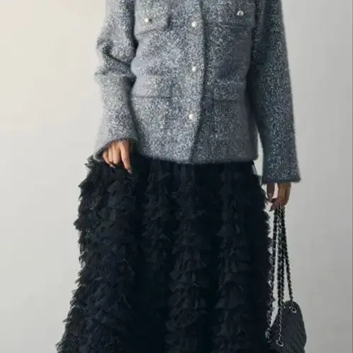 Frene 셋업 비쥬 니트 자켓 튤 프릴 스커트
