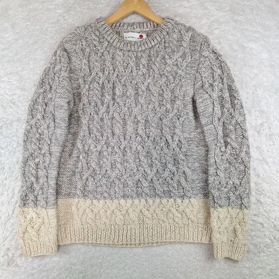네팔제 핸드메이드 케이블 니트 투톤 L