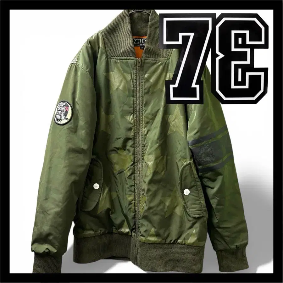 73R 세븐쓰리알 MA-1풍 블루종 별 패턴 카키 M