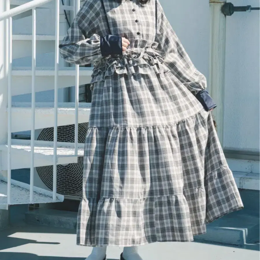 새상품급 kutir 체크 티어드 원피스 네이비 쿠티르와 레트로