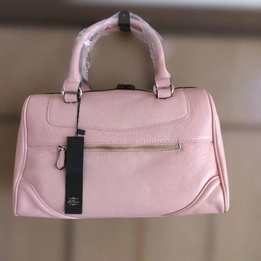 미사용 택 포함 천연 가죽 연어 오렌지 색상의 미니 보스턴 백 덤 포함