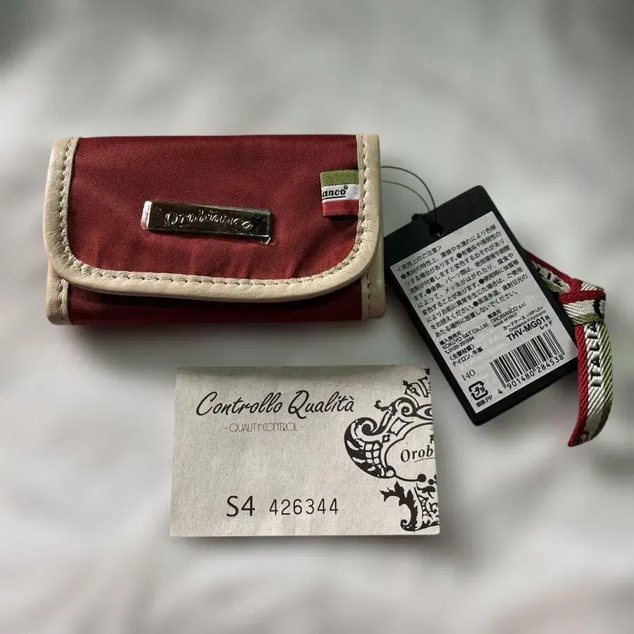 전시품 오로비안코 카드 케이스 레드 나일론 소가죽