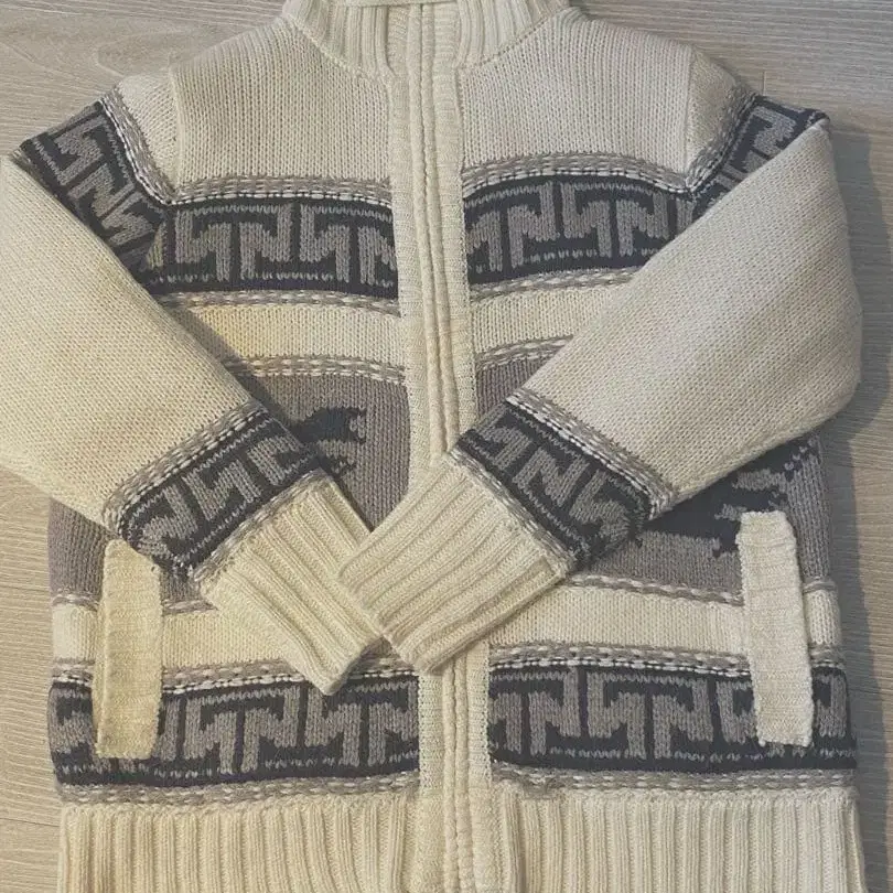 기하학 패턴 니트 스웨터 집업