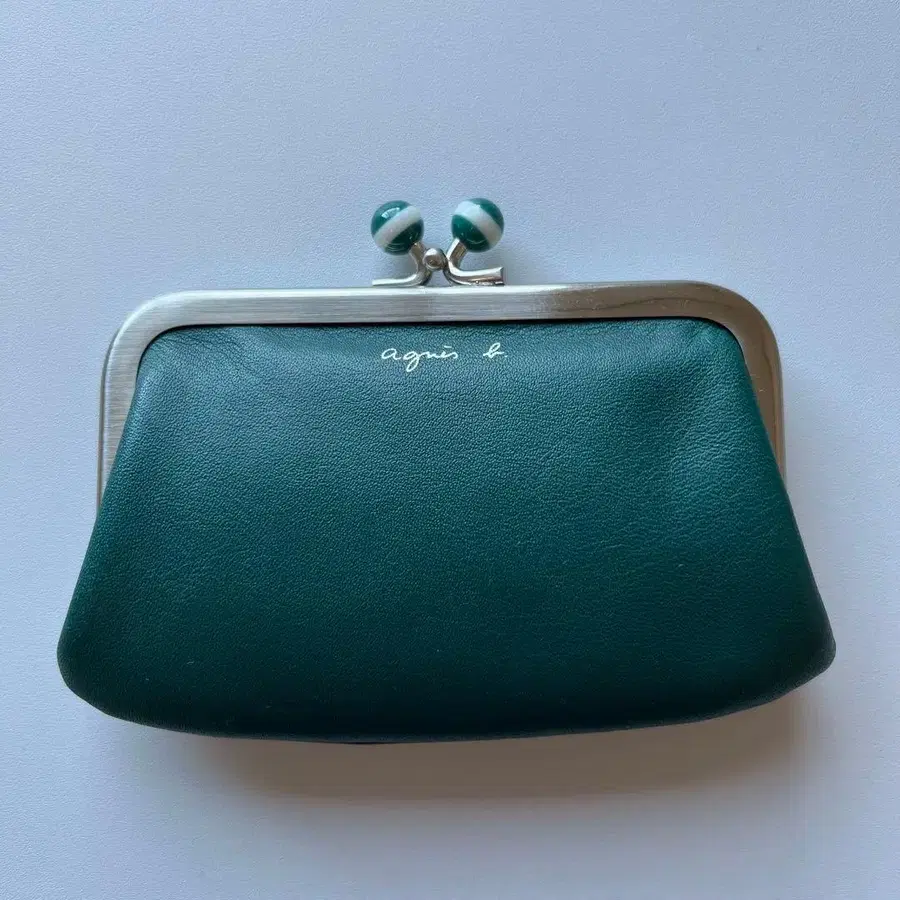 agnes b. 가죽 가마구치 코인 퍼스 그린