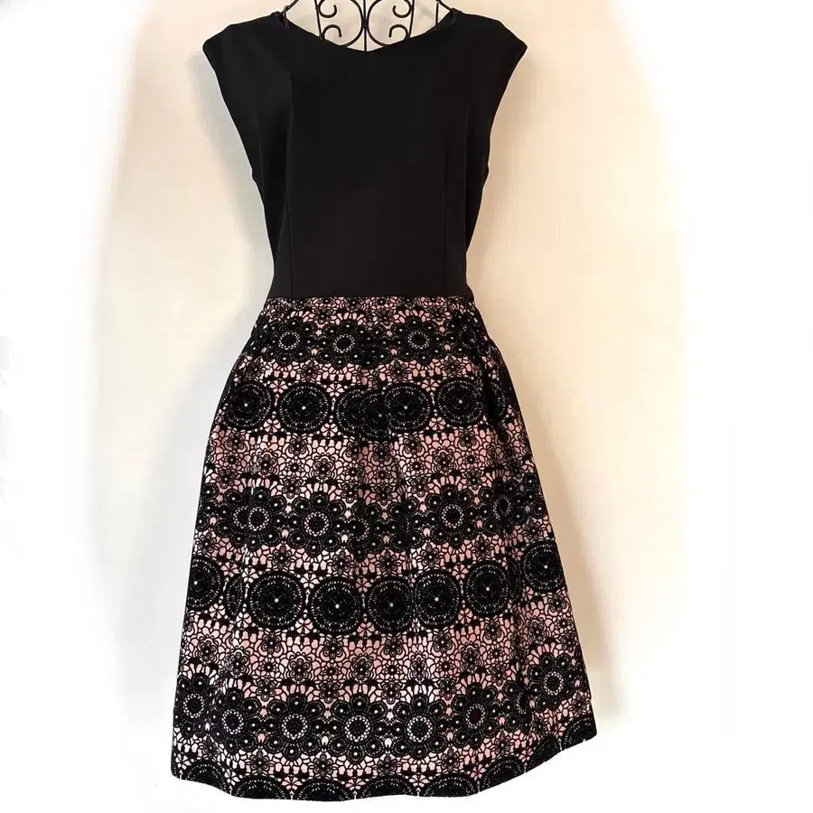 블랙과 핑크 꽃무늬 슬리브리스 원피스 일본제 고스로리 걸리시 파티
