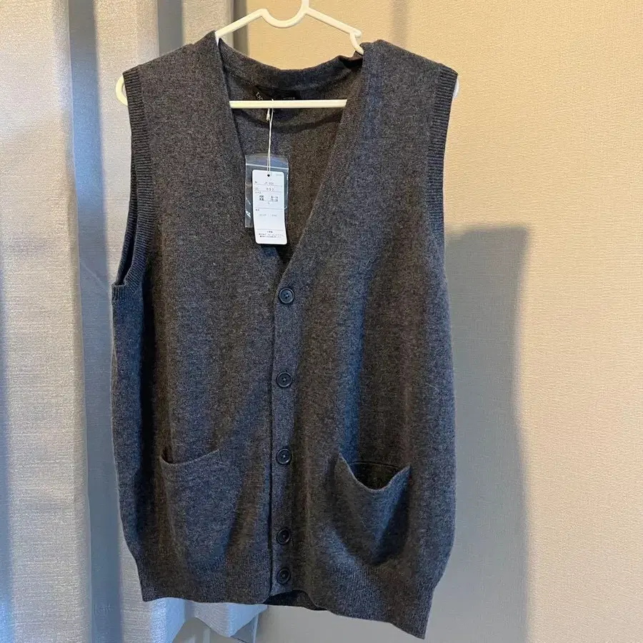 새상품 캐시미어 100% 베스트 스웨터 니트 그레이 L 여성용