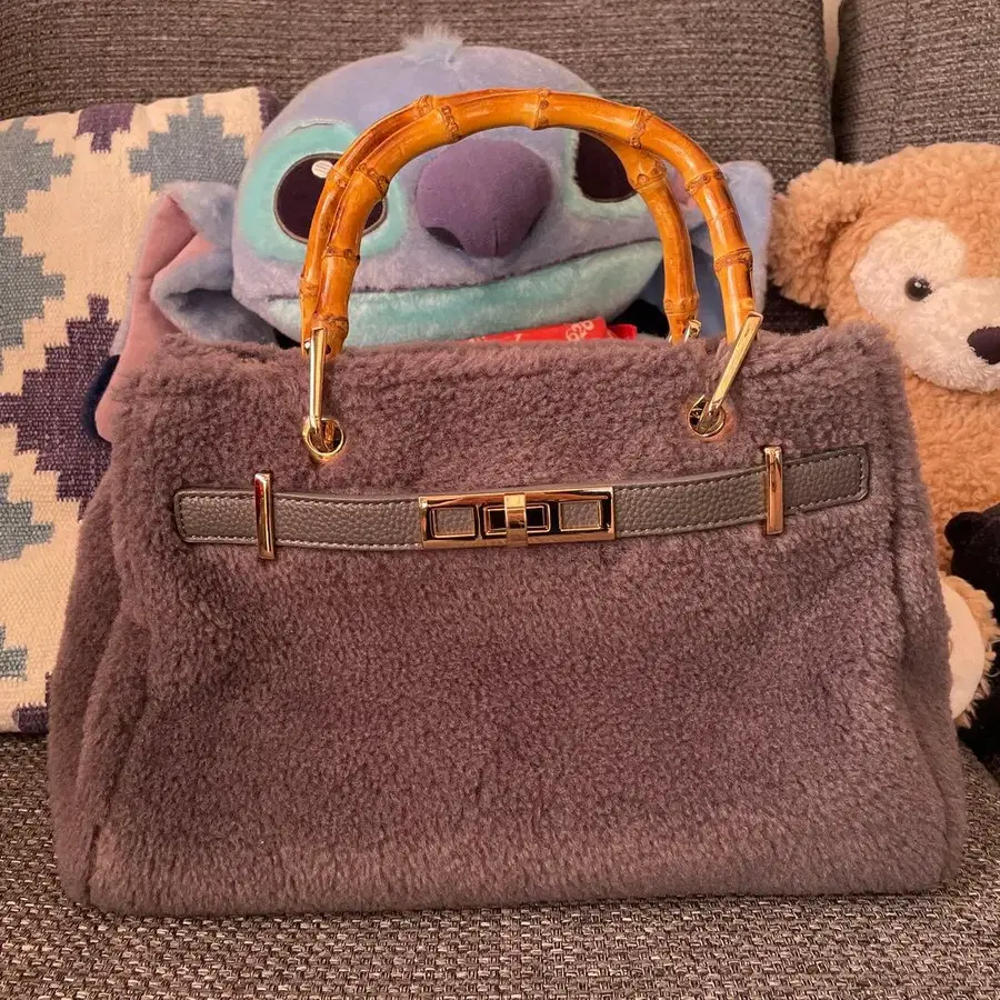 복슬복슬 그레이 퍼 핸드백 대나무 핸들