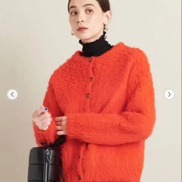 뷰티 앤 유스 샤기 자카드 크루넥 가디건