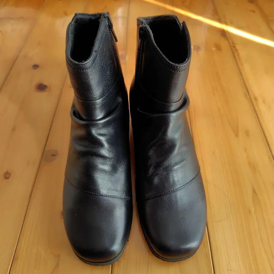 블랙 가죽 부티 지퍼 포함