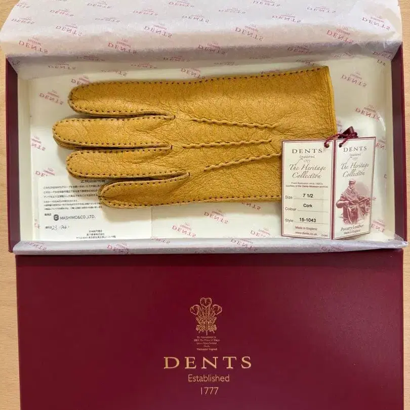 새상품 DENTS 언라이닝 페커리 가죽 그로브 CORK 코르크 7H