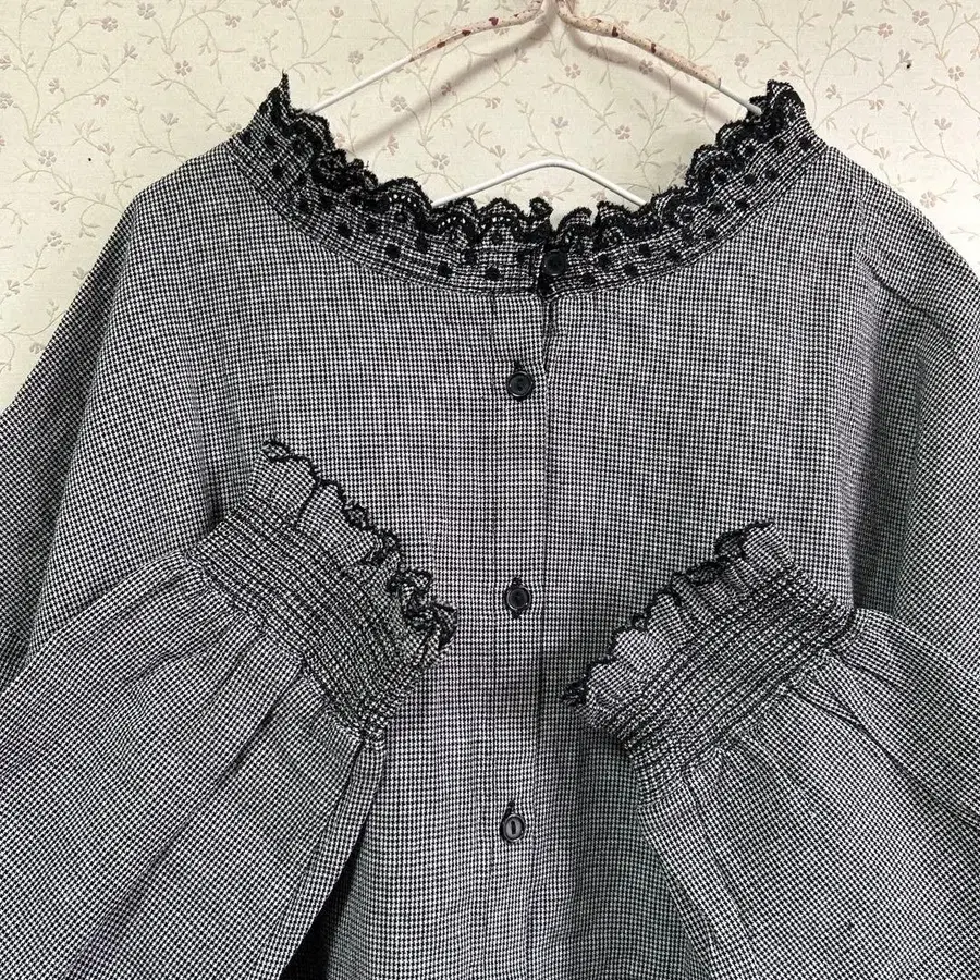사만사 모스모스 레이스 셔링 2WAY 블라우스 차콜