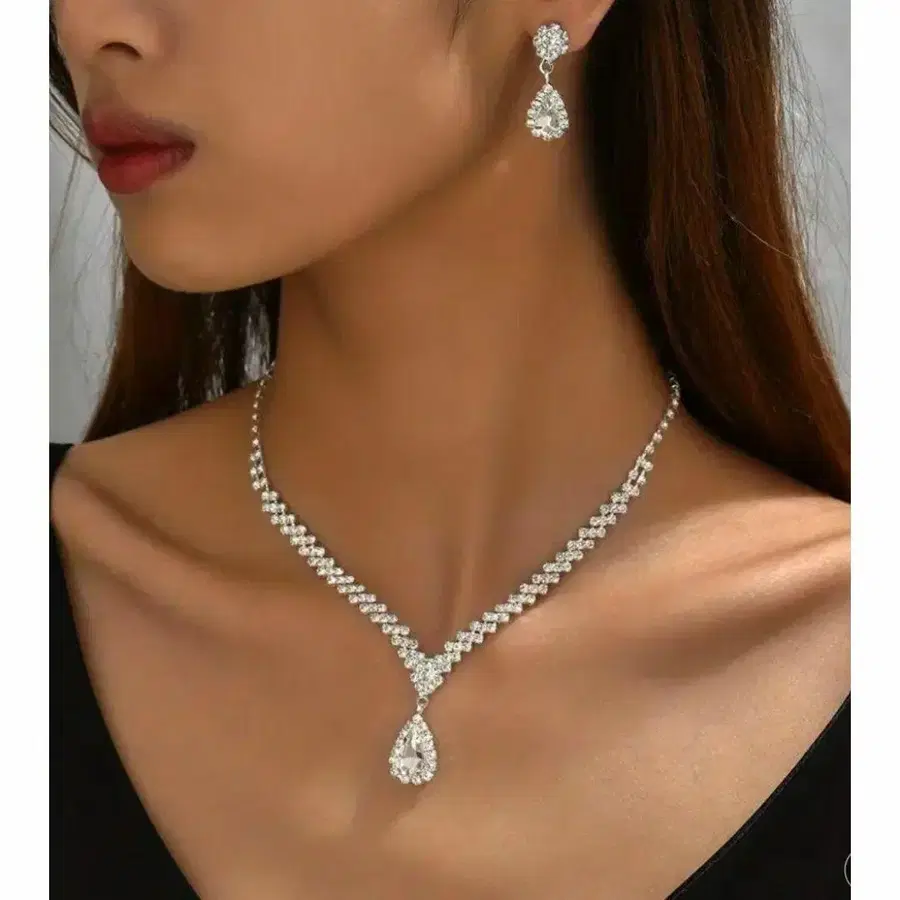 반짝이는 비쥬 목걸이 & 귀걸이 세트 웨딩 tnp24465