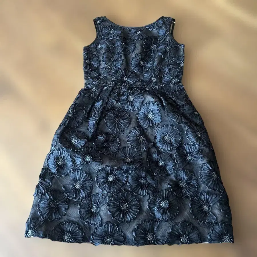 꽃무늬 자수 슬리브리스 무릎 기장 원피스