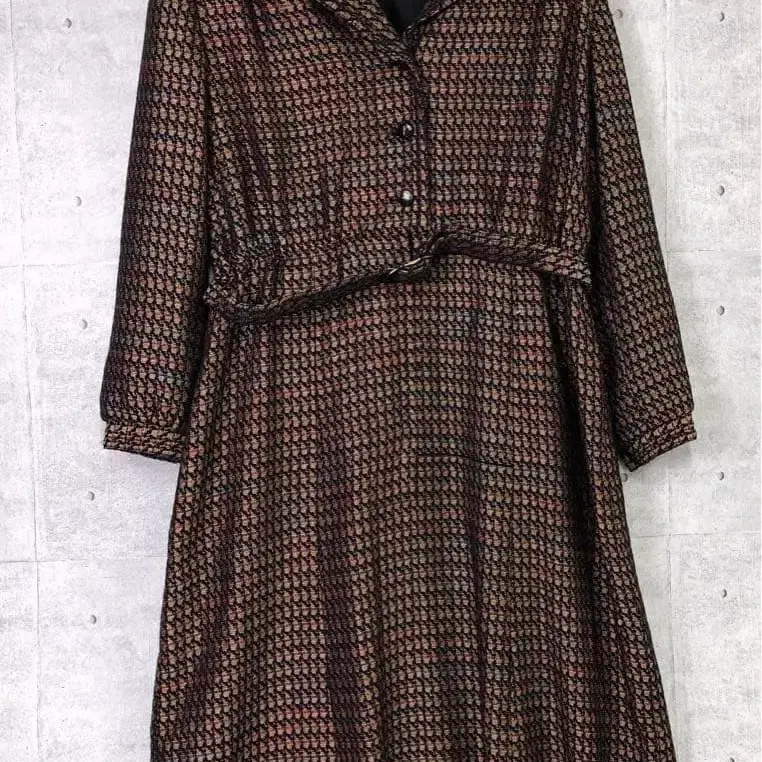 쇼와 레트로 올드 구제 의류 벨트 포함 자카드 오픈 카라 원피스