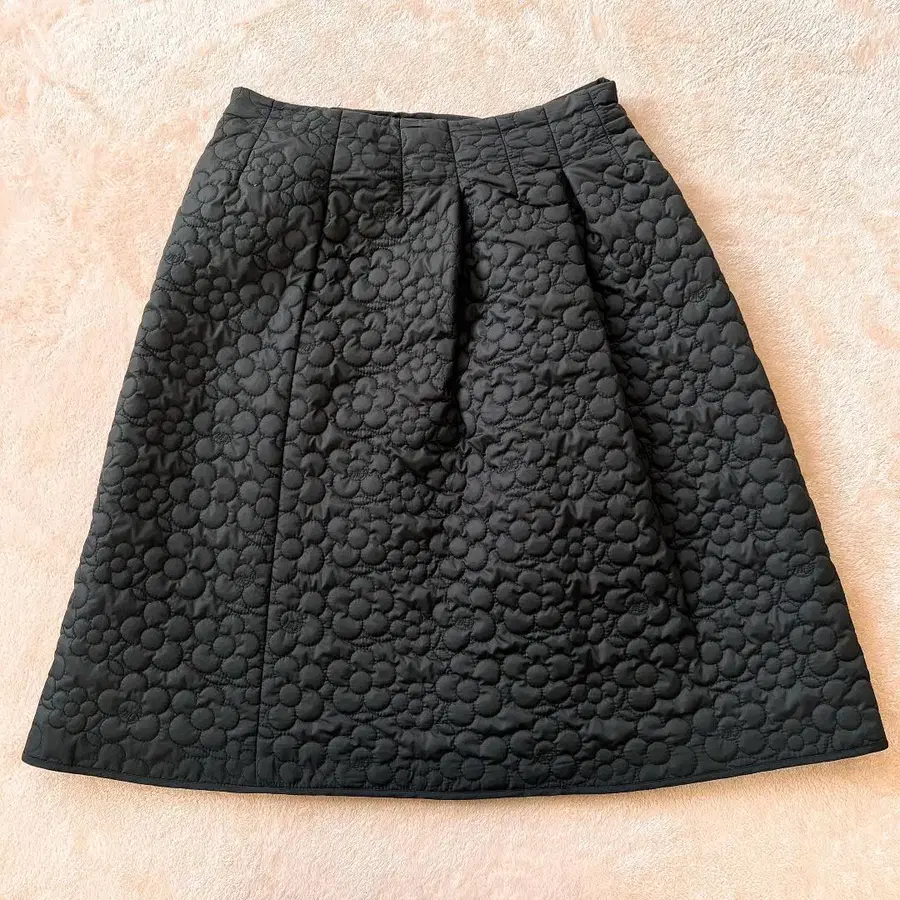[ 새상품급 ] 엠즈 그레이시 블랙 꽃무늬 퀼팅 플레어 스커트 무릎 기장