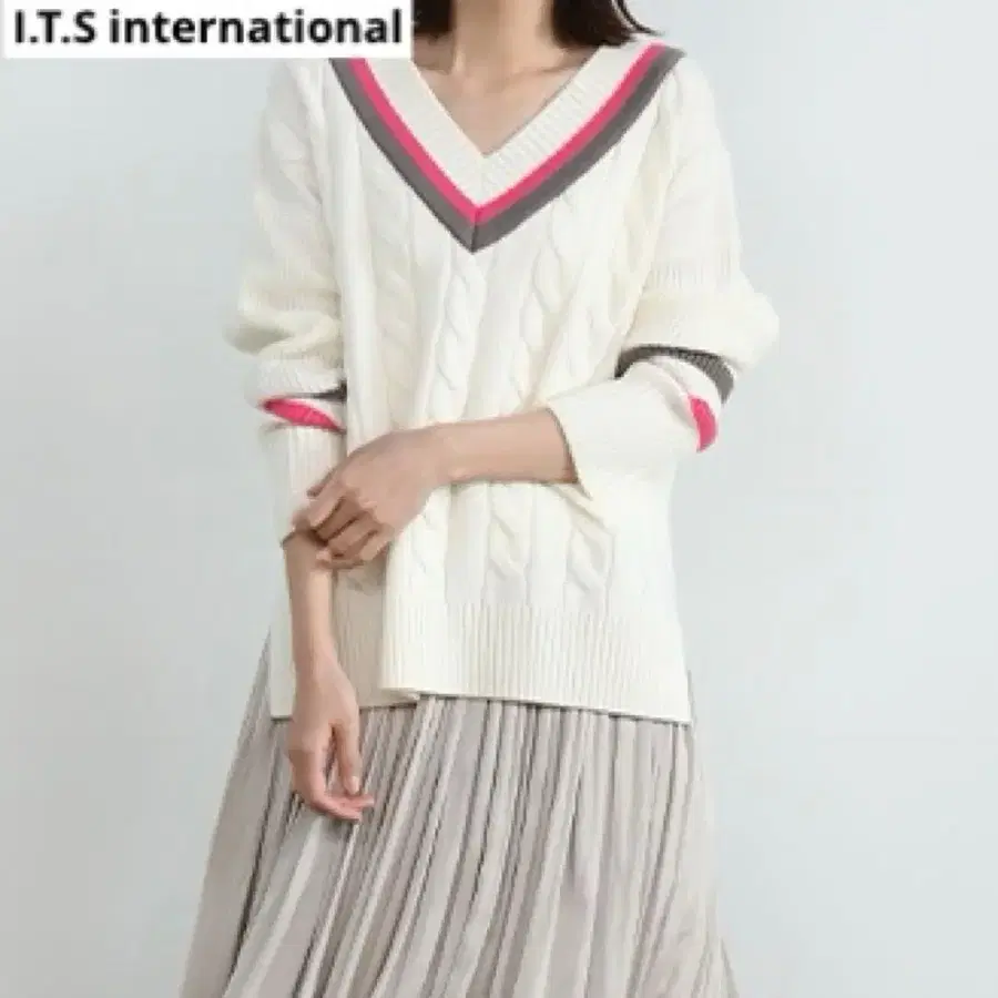 칼리지 니트 케이블 니트 V 넥