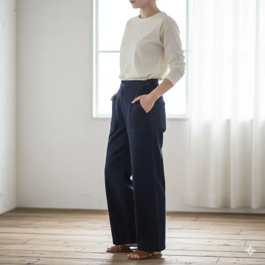 새상품급 homspun 홈스펀 패치 포켓 와이드 팬츠 네이비 XS