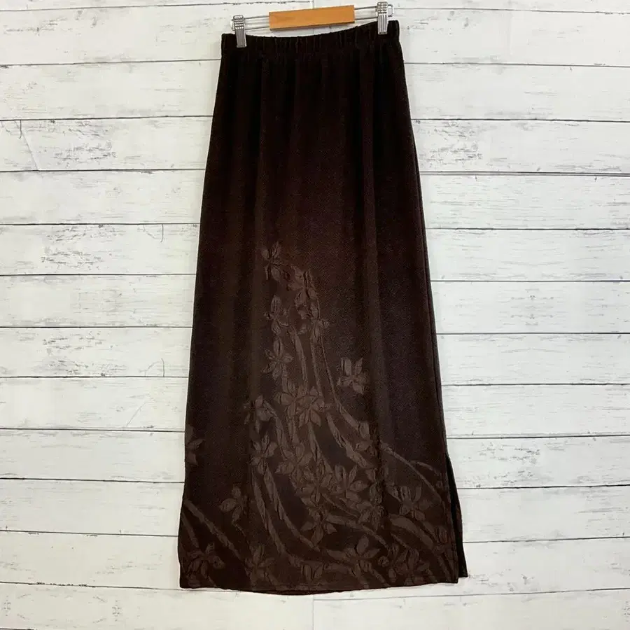 꽃무늬 자수 롱 스커트 브라운 허리밴딩 체형 커버 가을/겨울 M