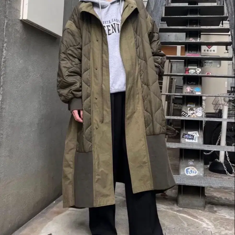 etsinta 에신타 절개 맥시 밀리터리 코트 롱 코트 퀼팅