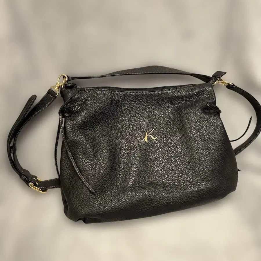 미사용 키타무라 블랙 가죽 숄더백 K 로고 포함