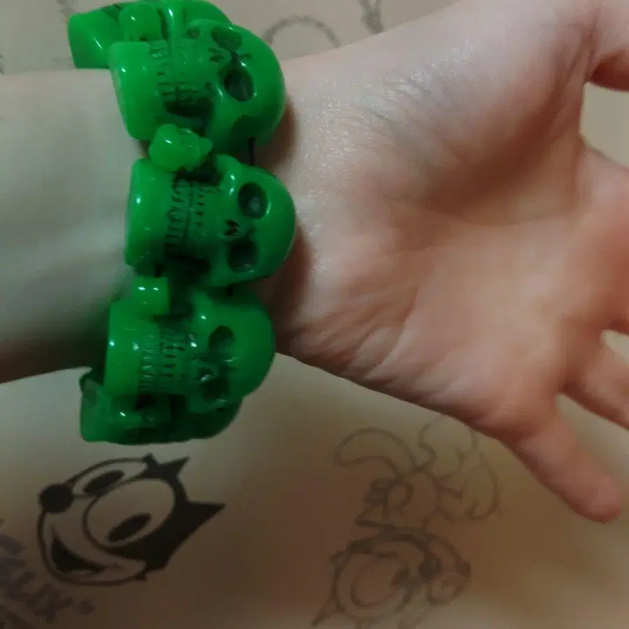 그린 컬러 스컬 디자인 러버 밴드 4개 세트