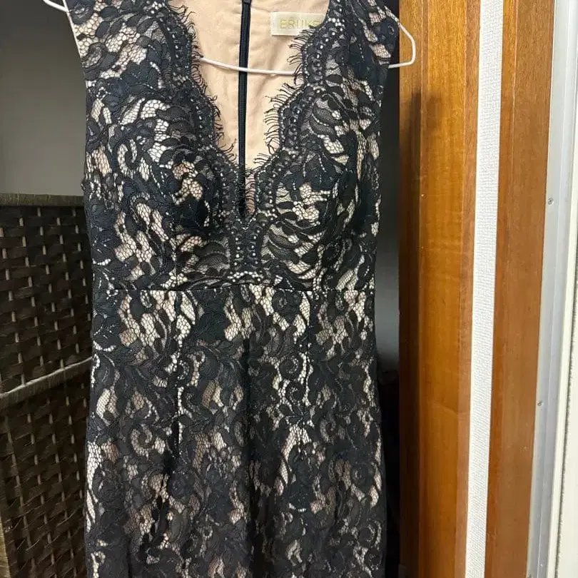 ERUKEI 레이스 타이트 드레스 블랙 베이지
