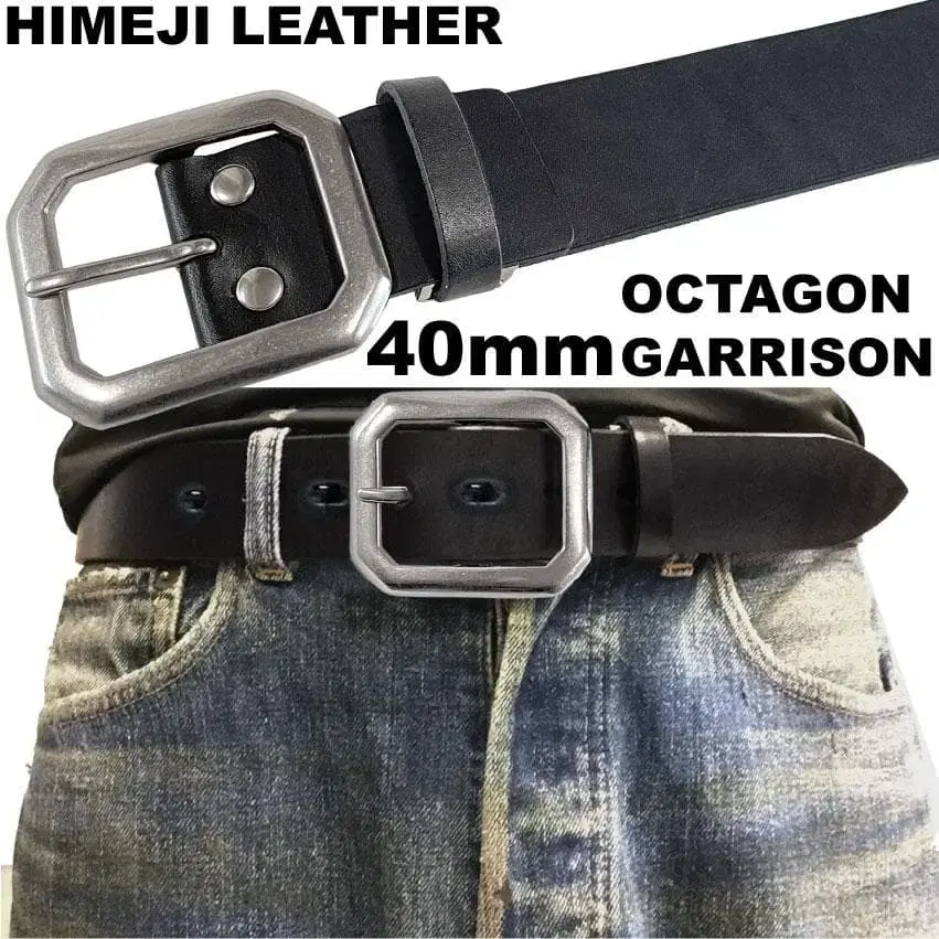 히메지 가죽 일본산 40mm 폭 도톰 소가죽 벨트 블랙 도치기 가죽 8각