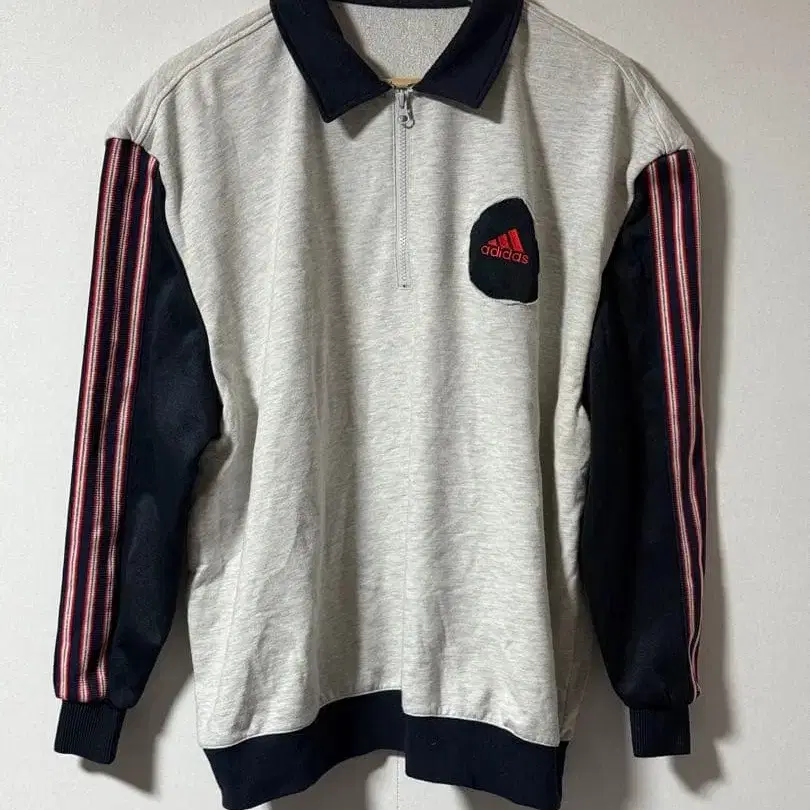 그레이 x 네이비의 절개에, 소매의 레드 3 스트라이프가 포인트인 아이템입니다.