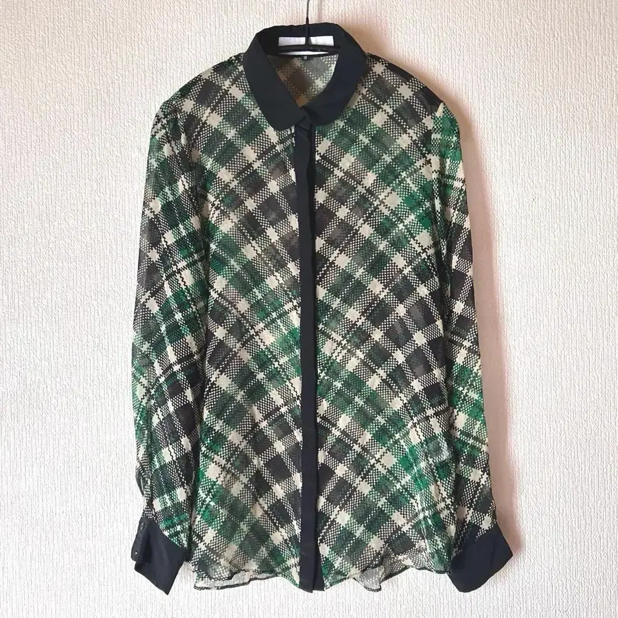 LE CIEL BLEU 그린 x 블랙 체크 무늬 긴팔 셔츠
