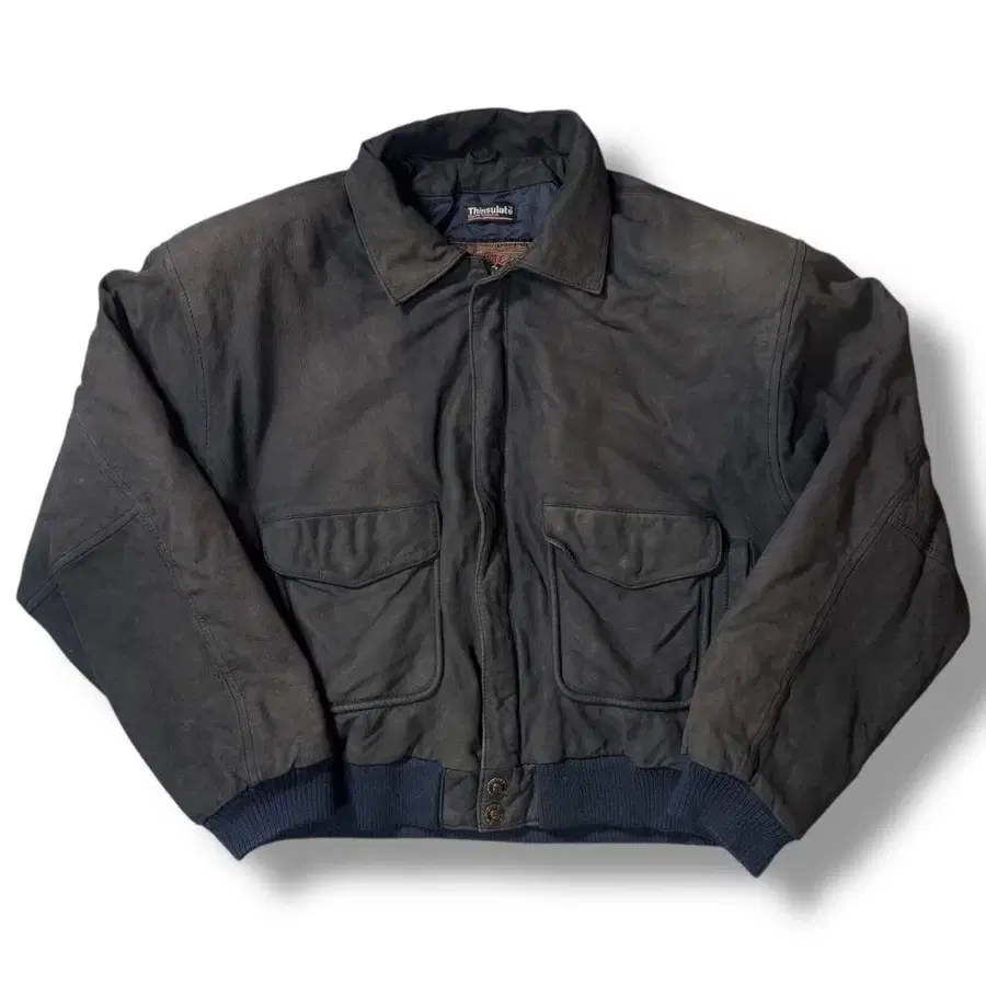 90s A-2 타입 가죽 자켓 L 네이비 신살레이트 페이드