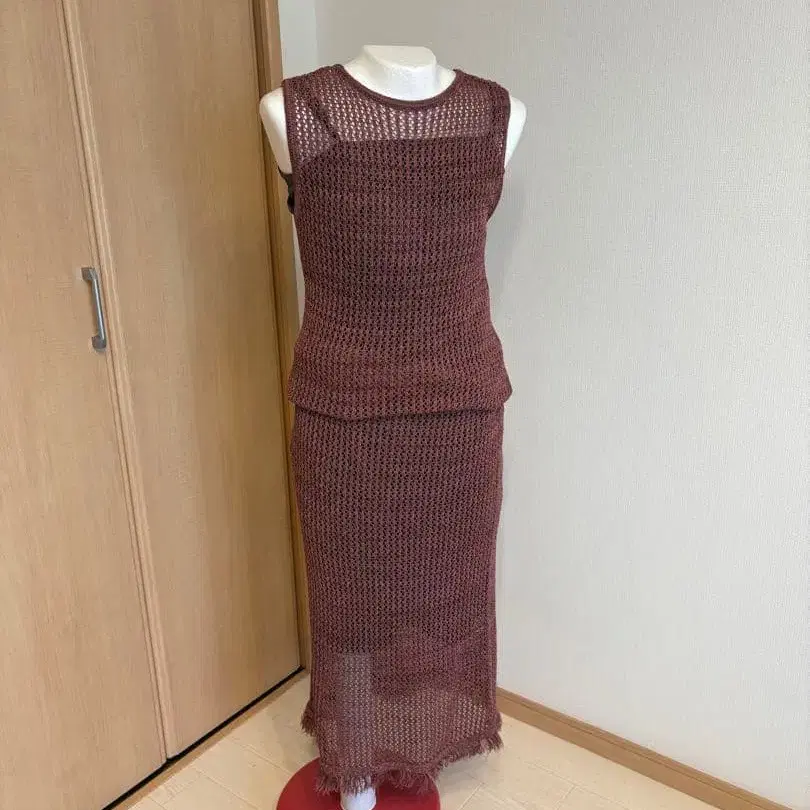 메쉬 편직 슬리브리스 롱 원피스
