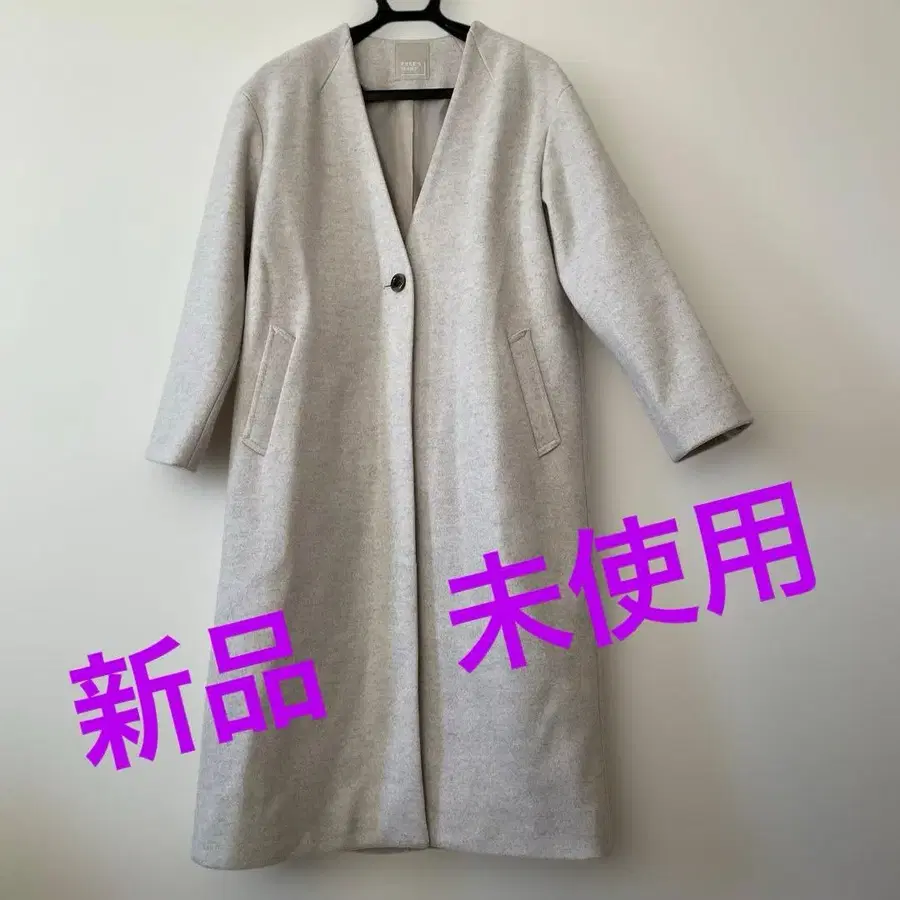 롱 코트 화이트 계열 그레이지 혼방 노카라 타입