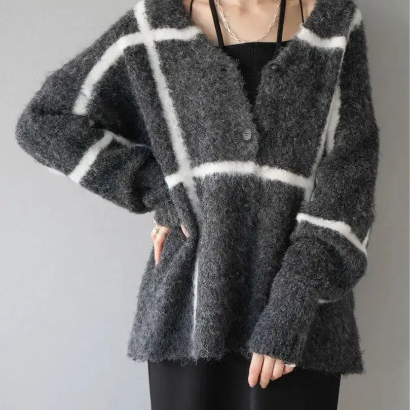 [ 새상품 ] 체크 무늬 가디건 그레이