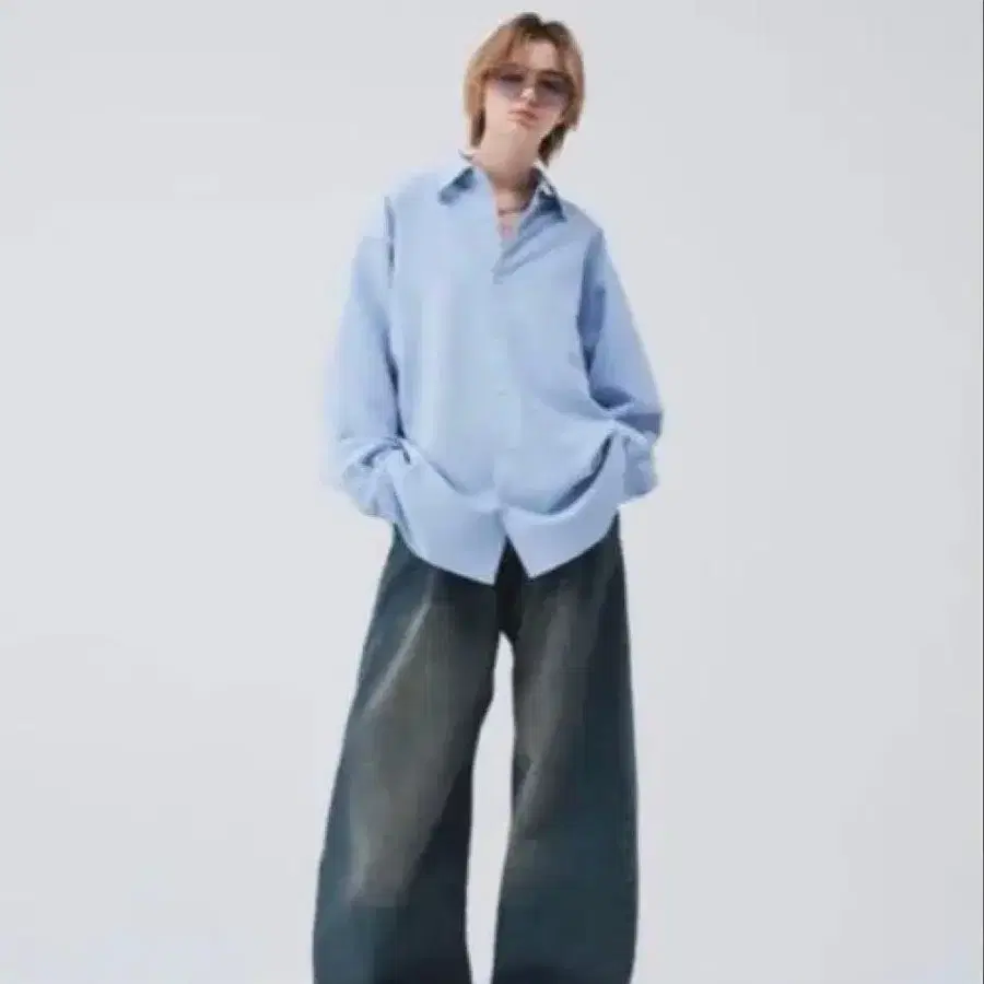 soerte, 오버 사이즈 롱 슬리브 셔츠, 색스 블루, 사이즈 3
