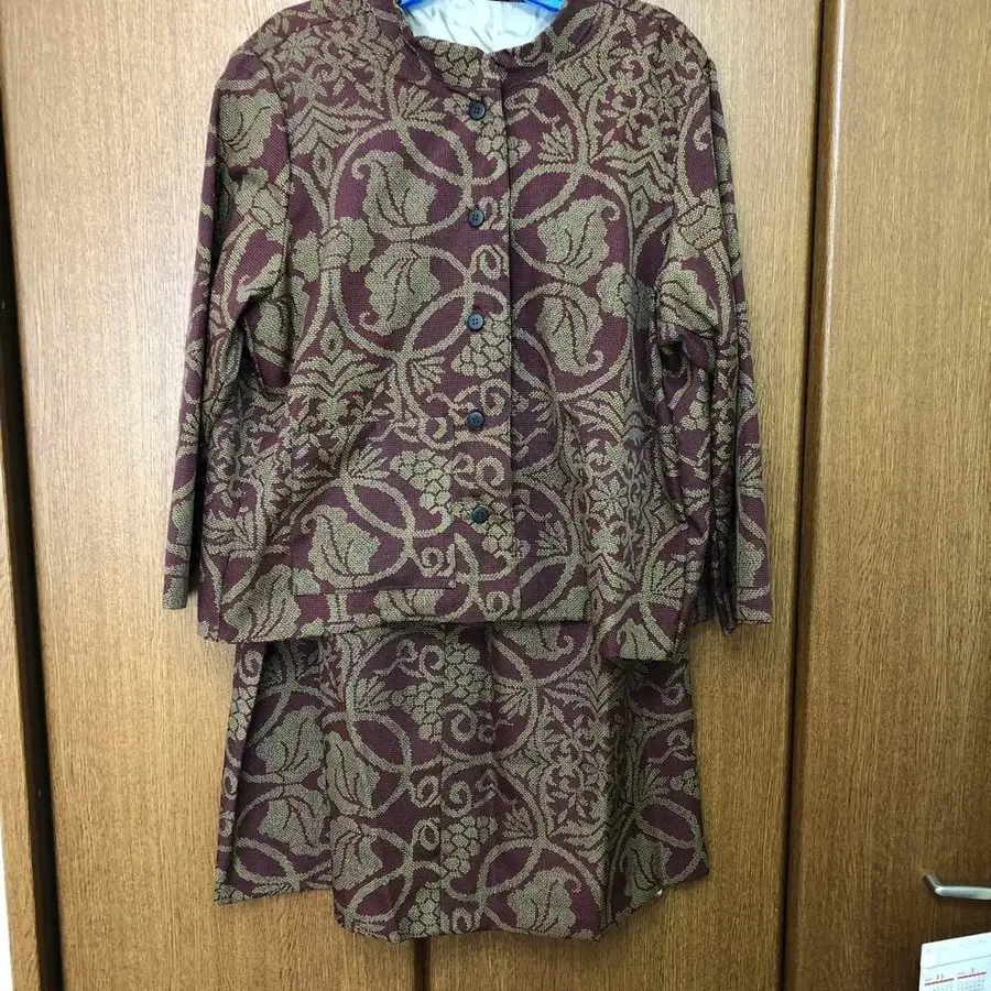 앤티크 기모노 원단 꽃무늬 스커트 셋업 (브라운과 골드 컬러)
