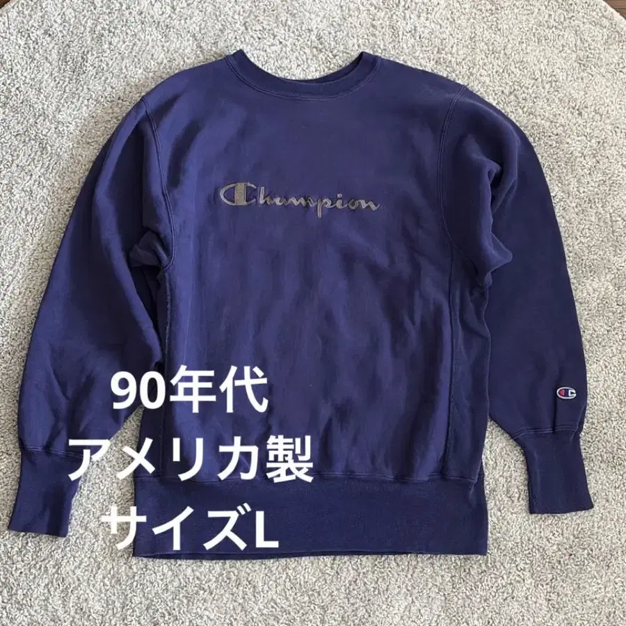 자동 번역되었어요. 원문보기네이비 색상의 90년대 Champion 트레이닝복, 자수 로고 포함.