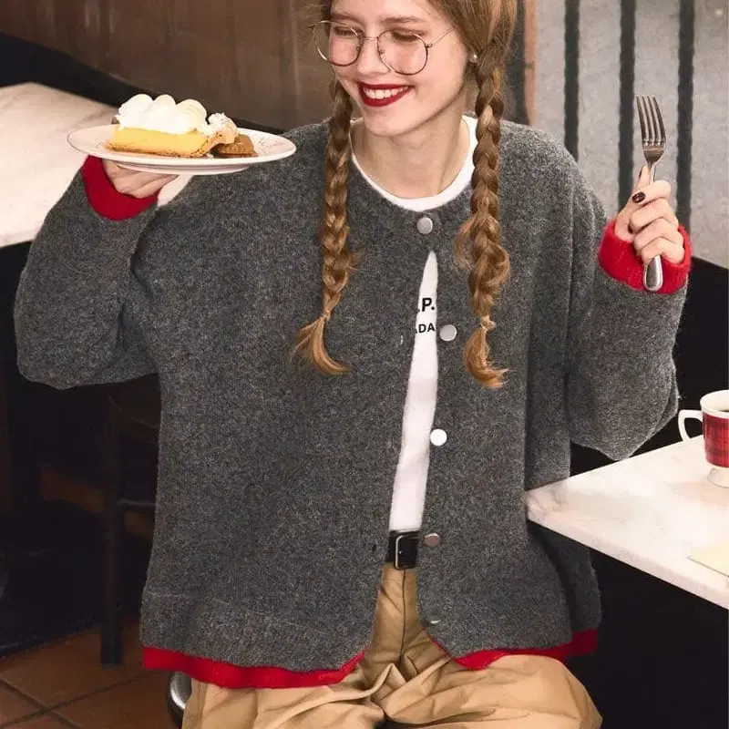 메탈 버튼 배색 가디건