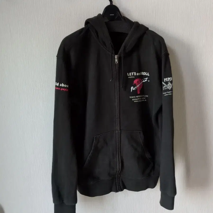Peppermint 블랙 후드티 프론트 지퍼 포함