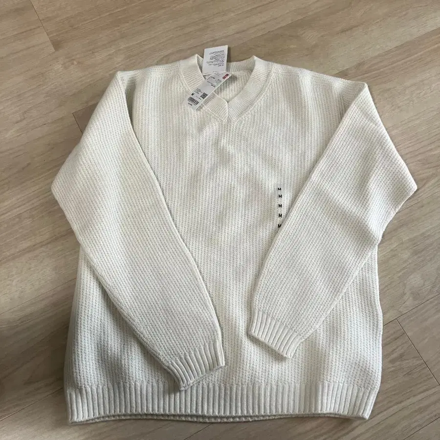 수플레얀 3D 니트 화이트 V넥 스웨터 M 사이즈