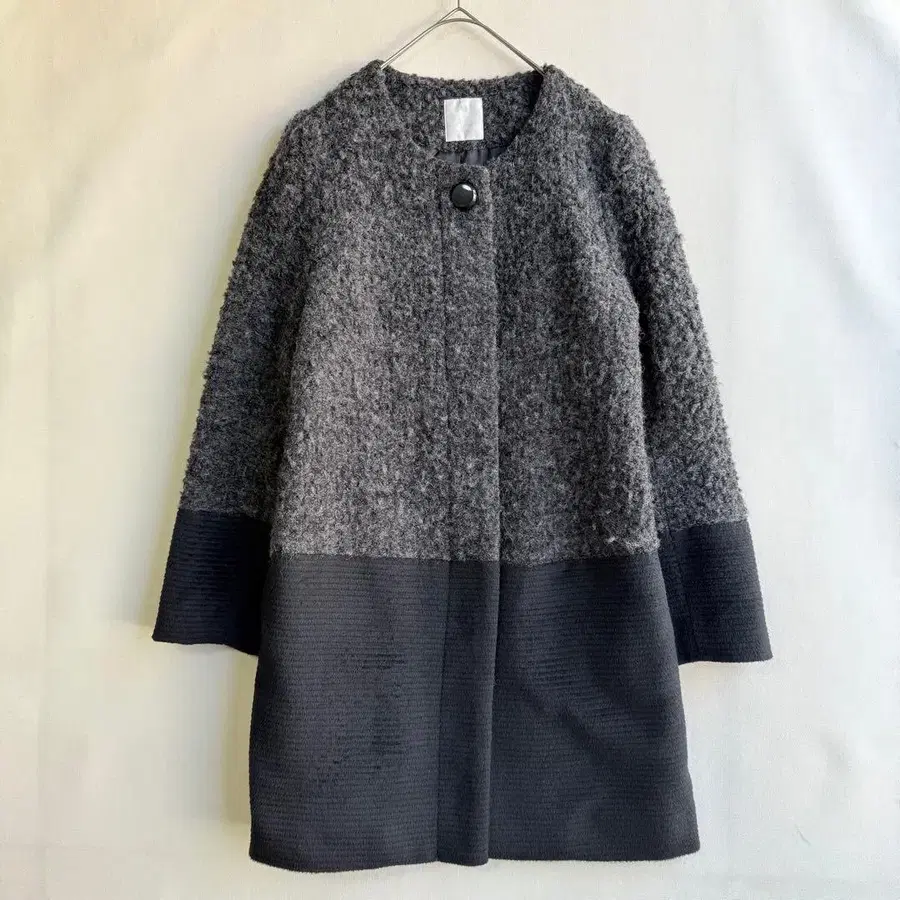 새상품급 아쿠아걸 여성용 바이컬러 노카라 울 코트 L