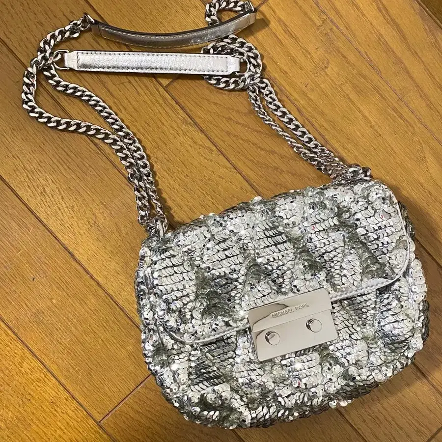거의 미사용 마이클코어스 숄더백 실버 반짝이 스네이크 무늬