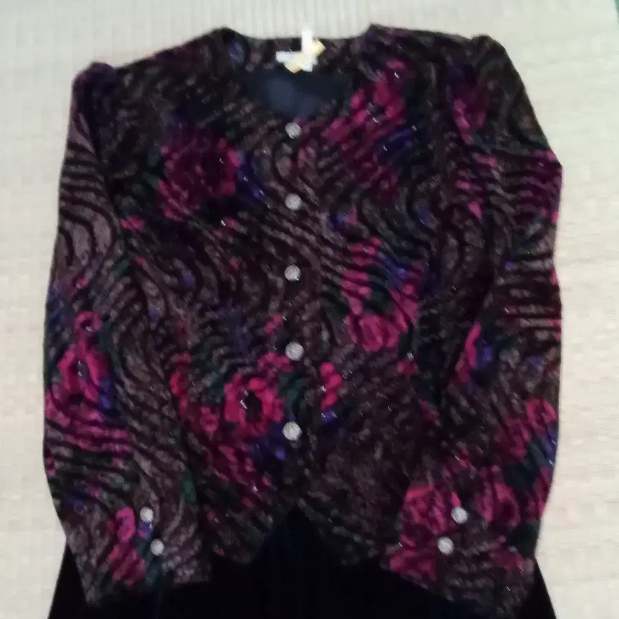 블랙과 빨간색과 그린과 브라운의 꽃무늬 롱 원피스