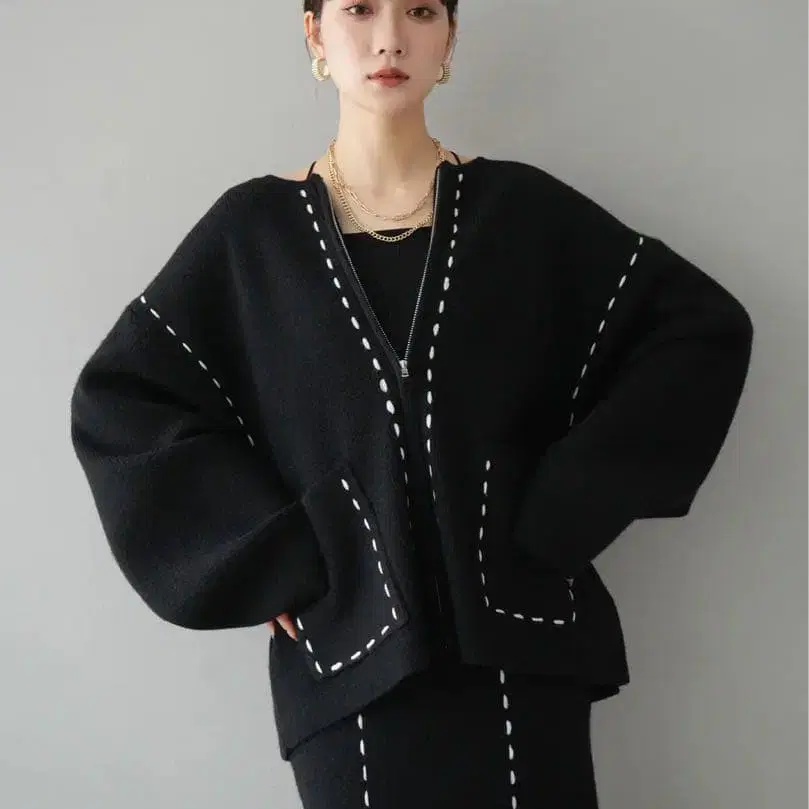 [ 새상품 ] 스티치 디자인 지퍼 니트 가디건