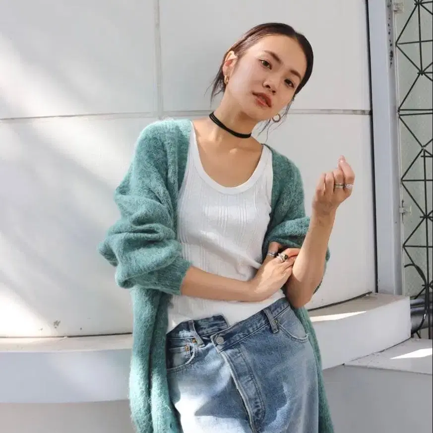 Ungrid 민트 그린 오버 사이즈 니트 가디건