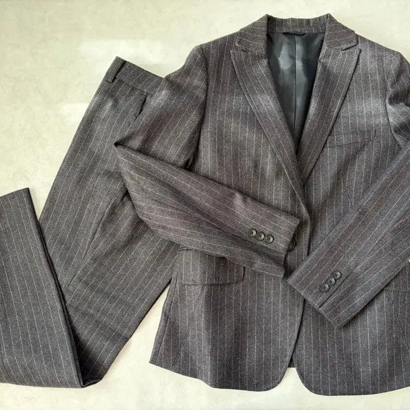 그레이 스트라이프 비즈니스 정장 상하의 세트