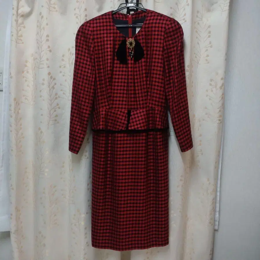 빨강 검정 체크 원피스