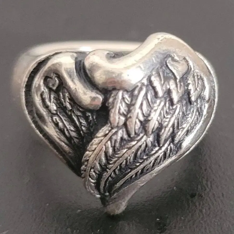 실버 하트 모양 깃털 무늬 반지 엔젤 하트